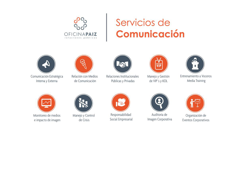 Fundada en el año 2008, con el objetivo de convertirnos en el guardián de la imagen de cada uno de nuestros clientes y sus marcas. Nos diferenciamos por brindar un servicio 100% personalizado y altamente creativo. Gestión con medios, comunicación estratégica, manejo de crisis, organización de eventos,conferencias de prensa, lobbying y Responsabilidad Social Empresarial.